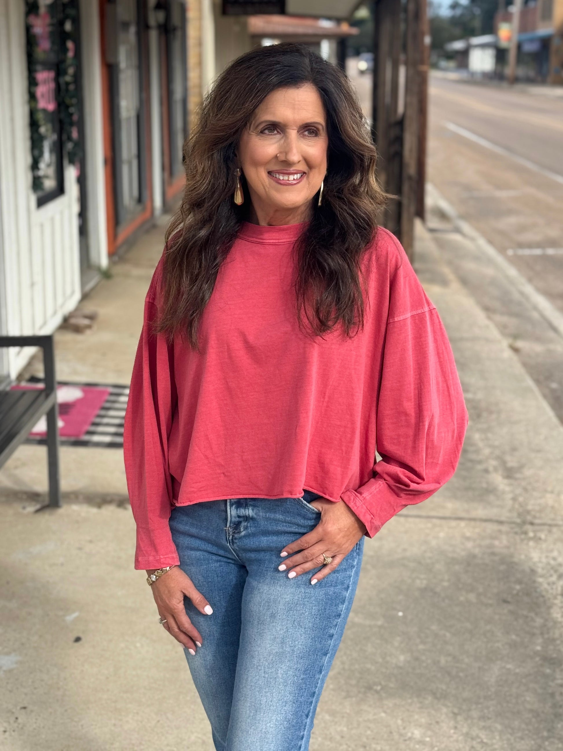 Introducing our Call Me Comfy Top- This cropped top features a raw hemline, lightweight material, and comfy fit for all-day wear. Don't miss out on this versatile and stylish addition to your wardrobe!