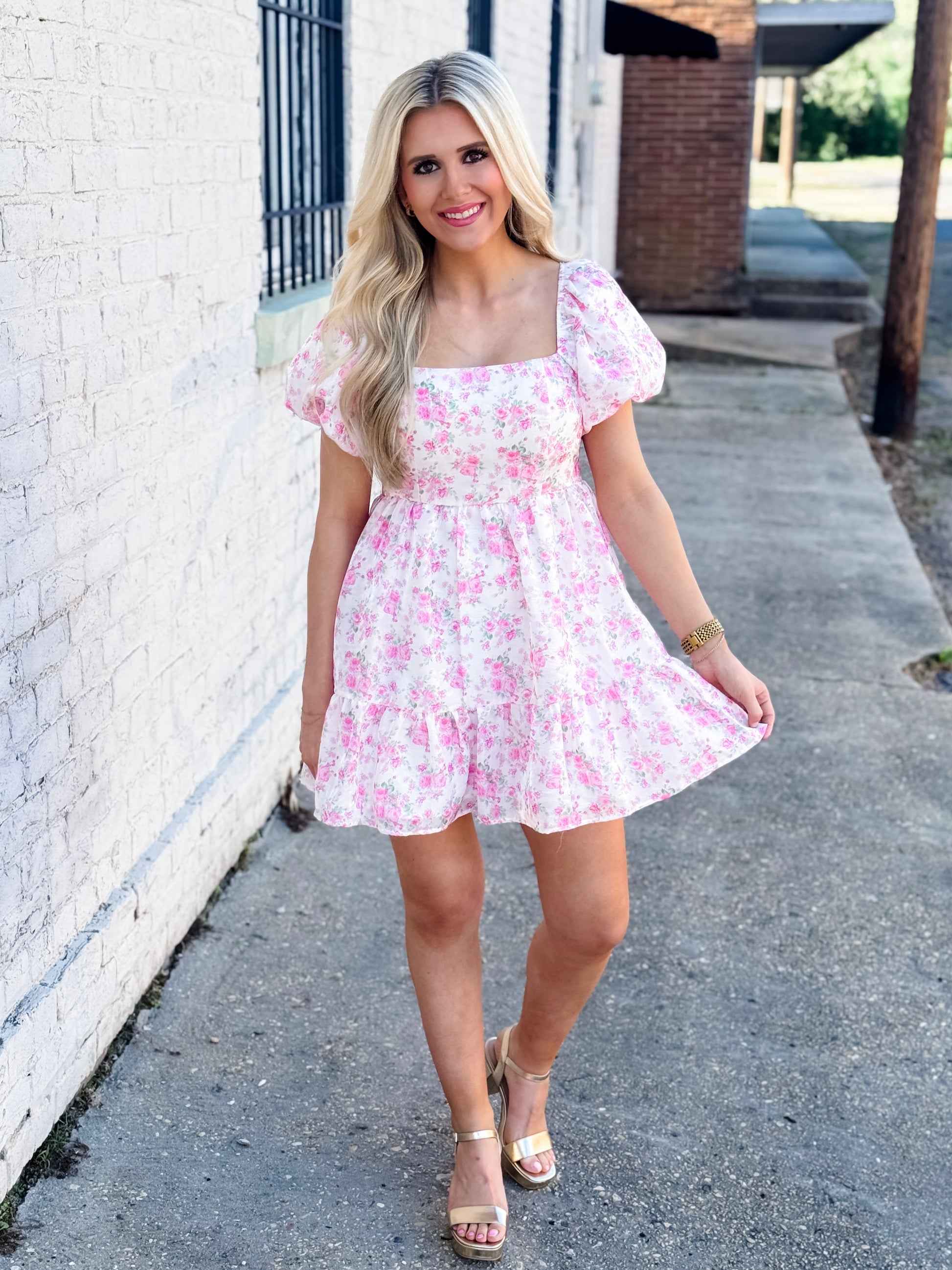 Get ready to feel like a princess with our Glimpse Of Glamour Dress. This charming dress exudes secret garden vibes with its floral design and playful pink bow in the back. Perfect for any girly girl looking to add a touch of glamour to their wardrobe. Feeling like royalty has never been easier!