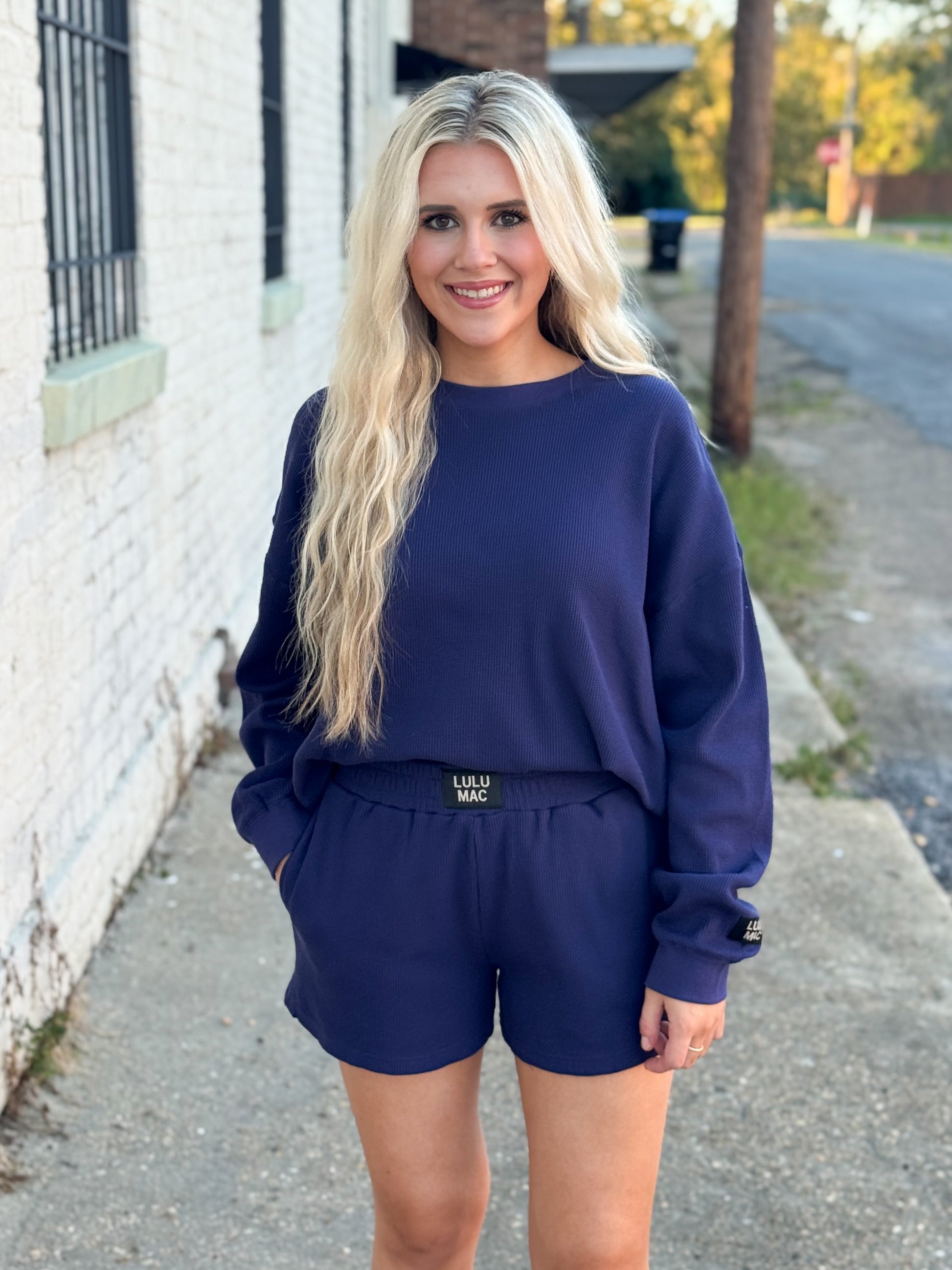 True to size with a relaxed fit. Katelyn is 5’7” and wearing a size small.
