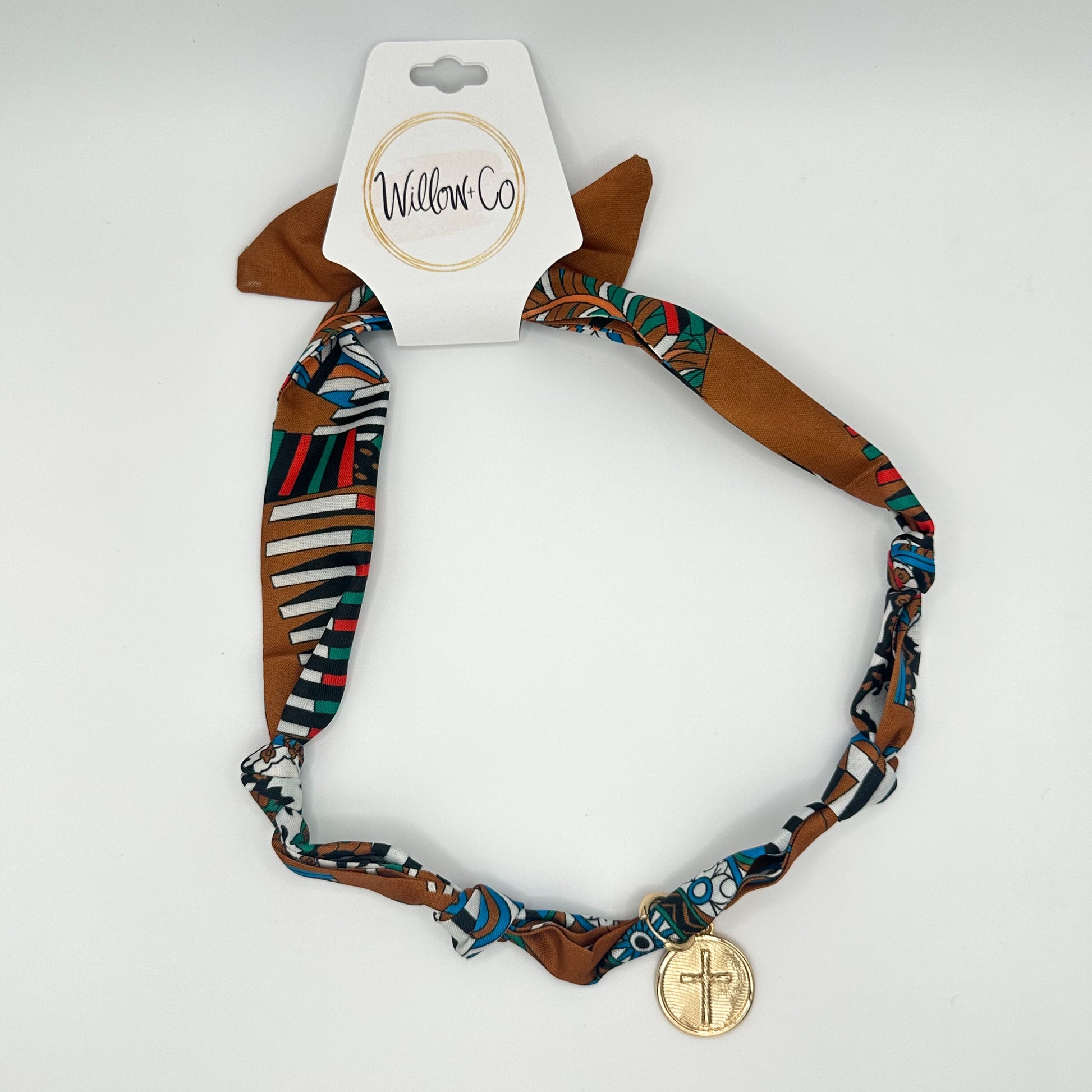 Scarf Necklace BROWN/WHITE/CROSS