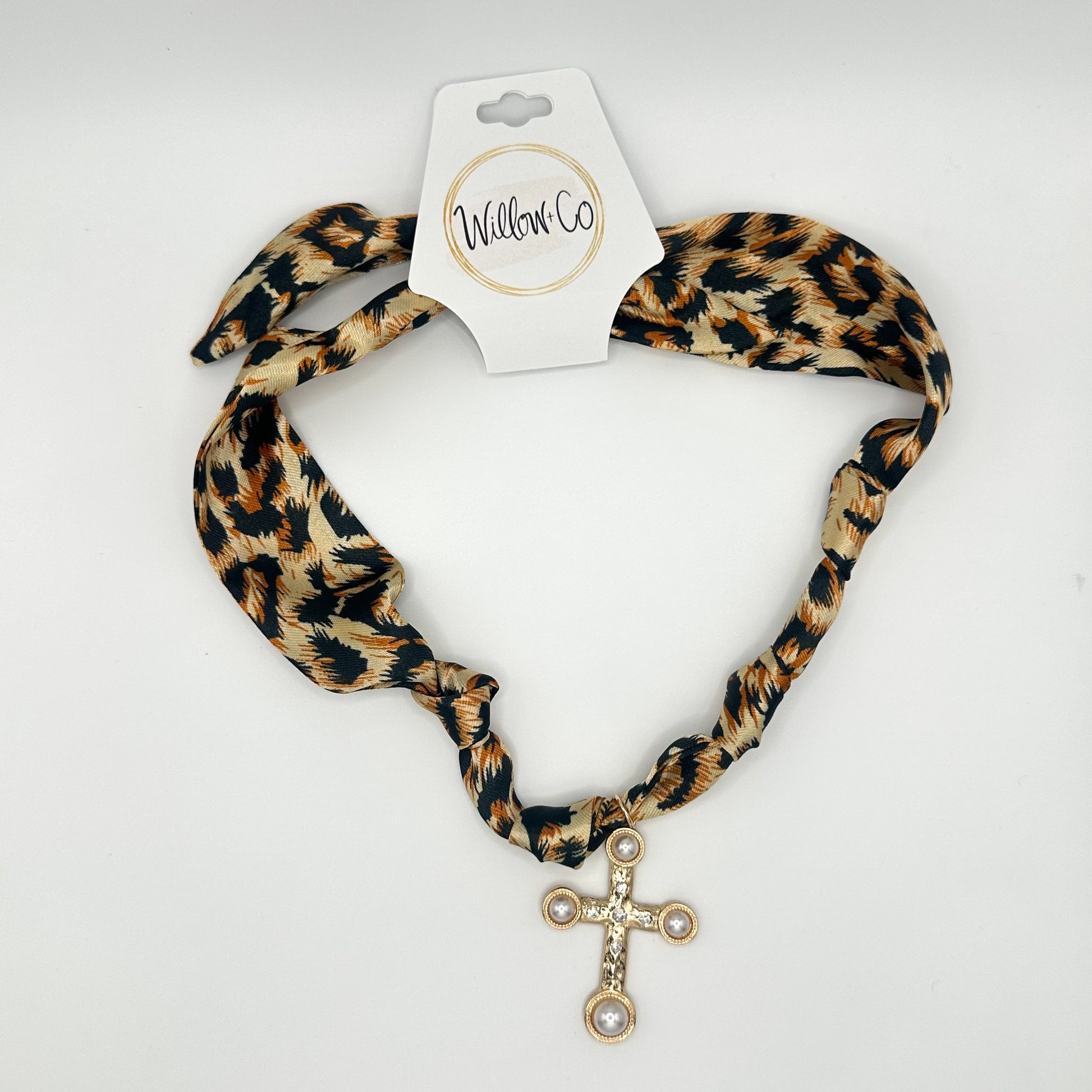Scarf Necklace LEOPARD/GOLD/CROSS